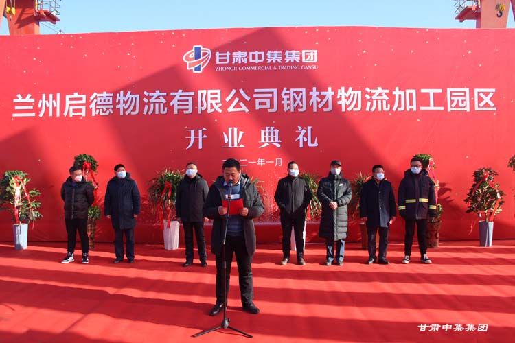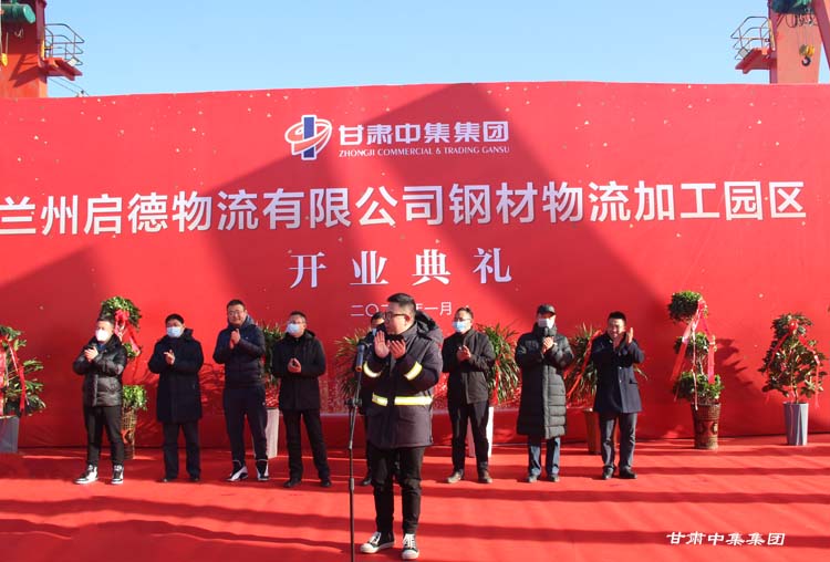 2021年1月12日上午10:18分,甘肅中集實業(yè)集團(tuán)有限公司旗下蘭州啟德物流有限公司河口鋼材物流加工園區(qū)開業(yè)慶典在甘肅物產(chǎn)集團(tuán)河口物流園隆重舉行。甘肅中集實業(yè)集團(tuán)有限公司黨委書記、董事長周啟濤隆重宣布物流園開業(yè)。酒鋼集團(tuán)、八一鋼鐵集團(tuán)、內(nèi)蒙古包鋼集團(tuán)、甘肅省物產(chǎn)集團(tuán)河口物流園、甘肅省鋼材商會、物流園轄區(qū)及公司合作伙伴等100余名領(lǐng)導(dǎo)嘉賓參加開業(yè)慶典。